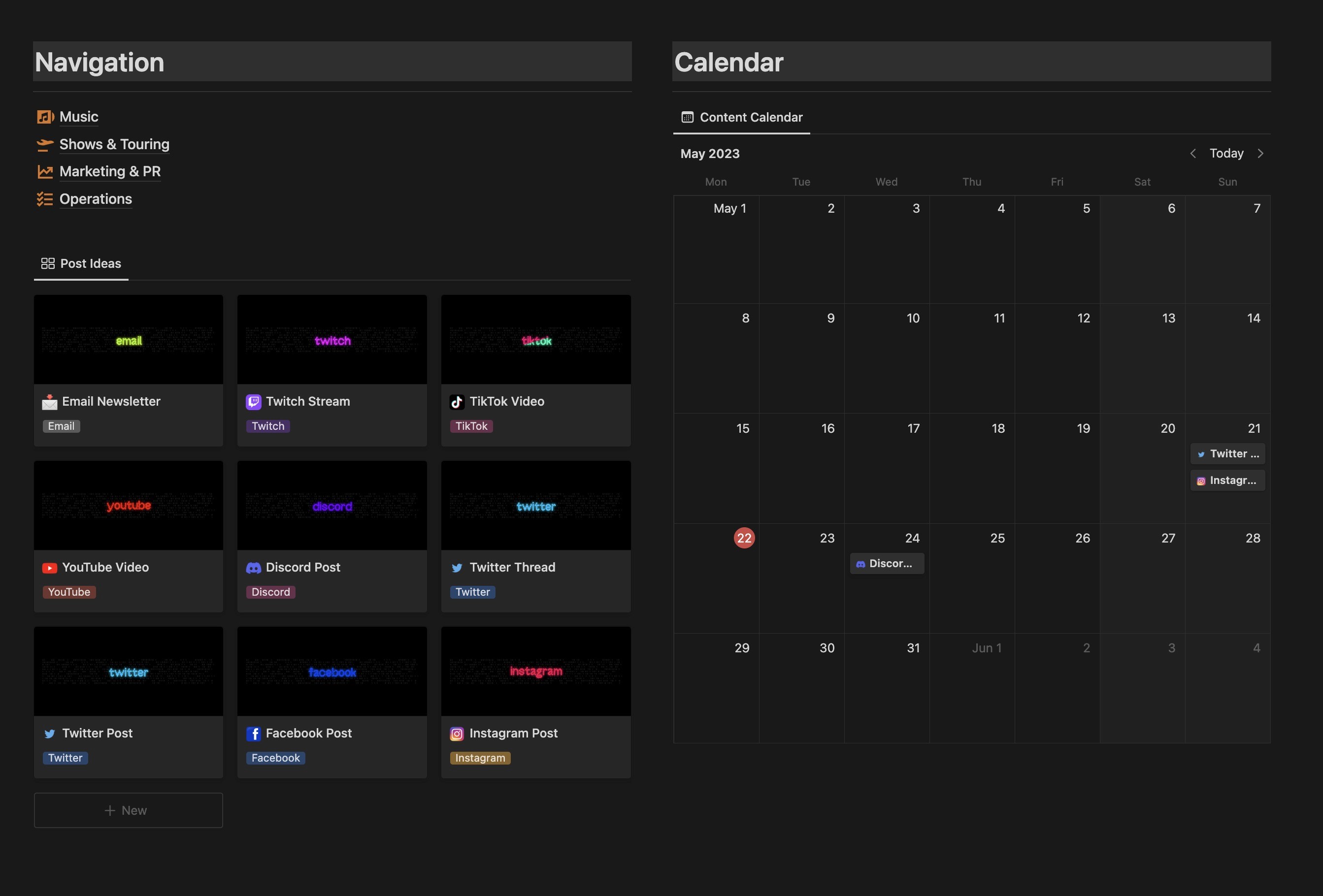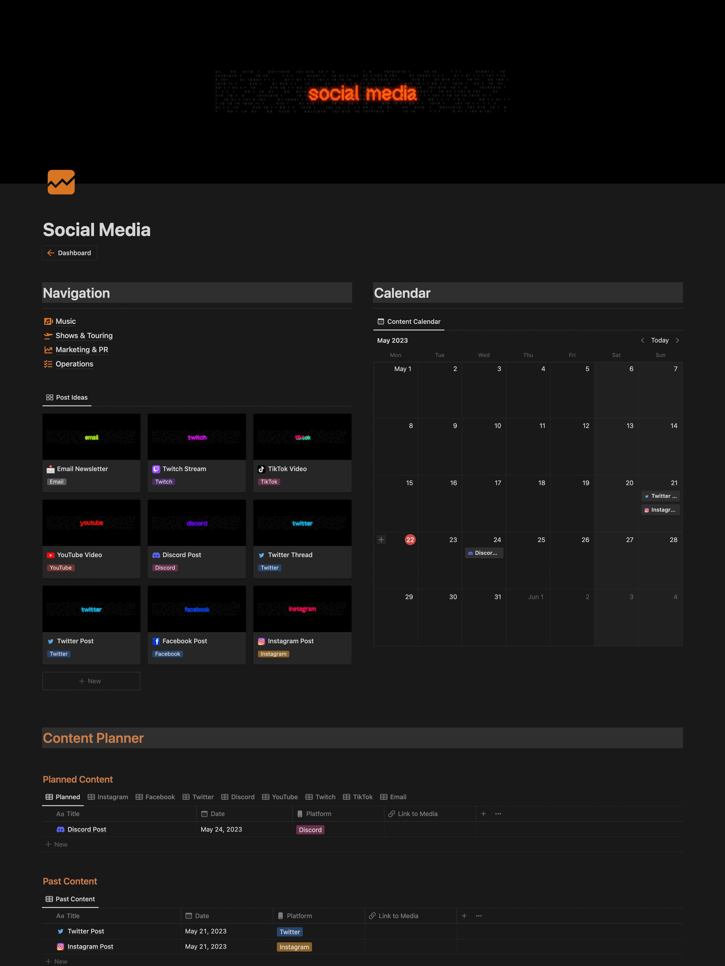 Say goodbye to chaotic talent management and fragmented tasks. Streamline your entire music business by utilizing a centralized Notion template