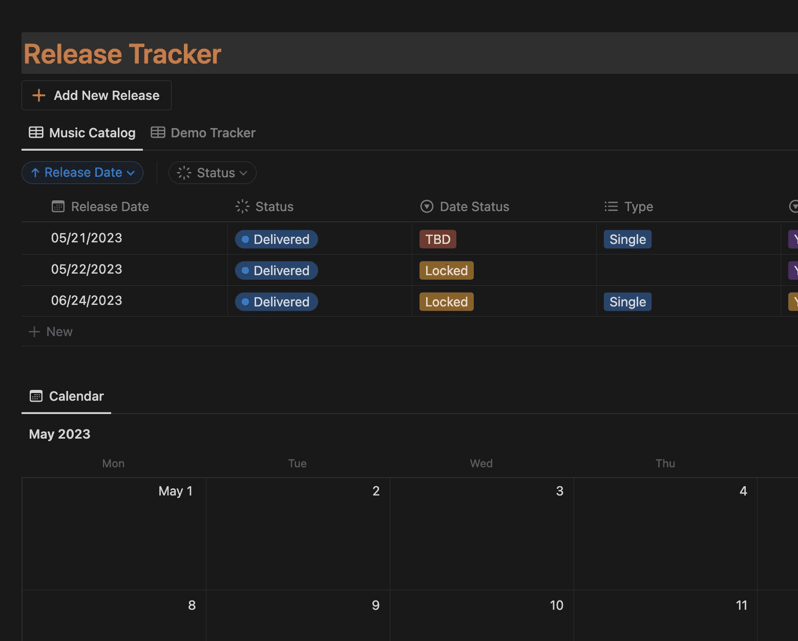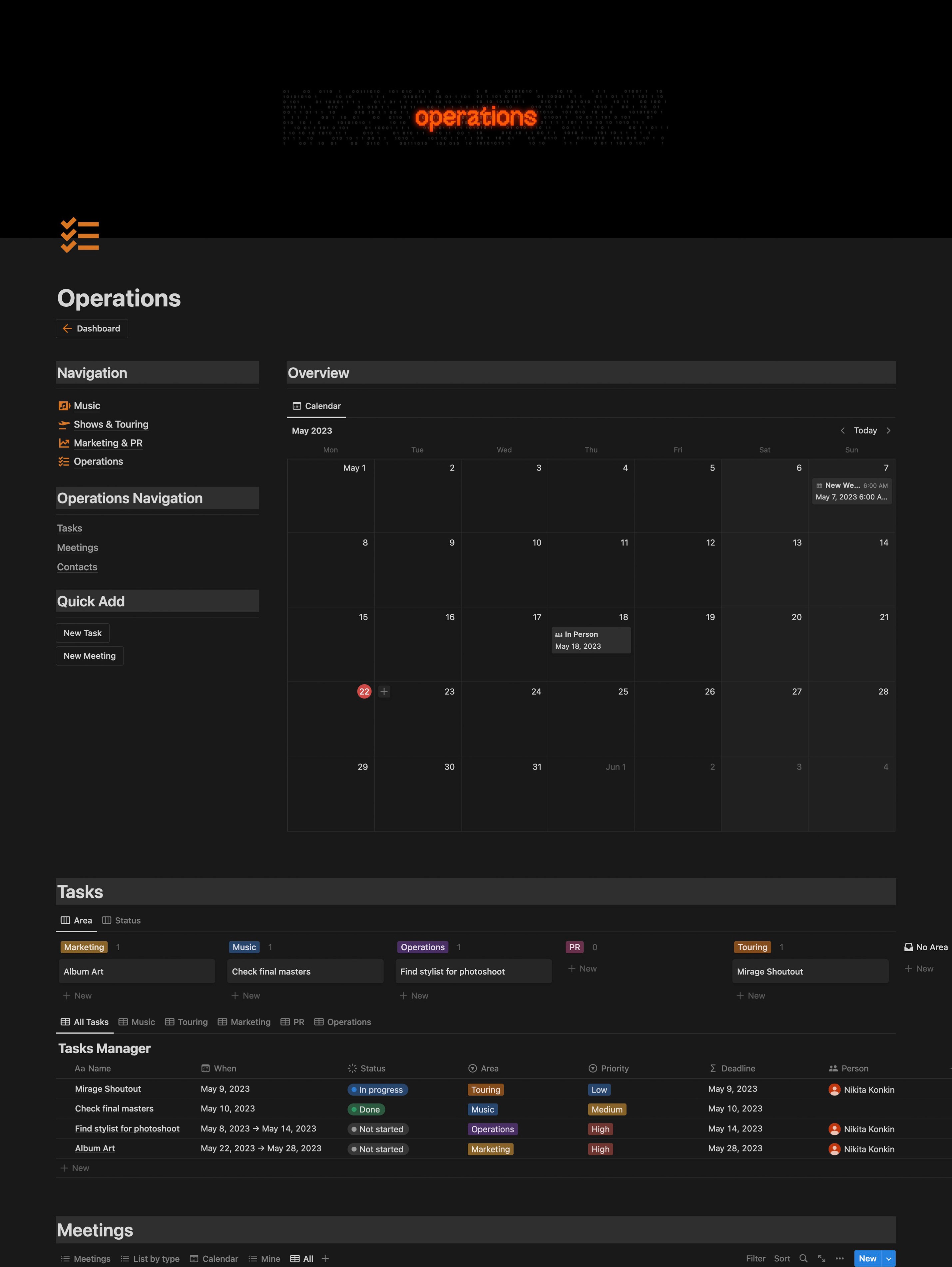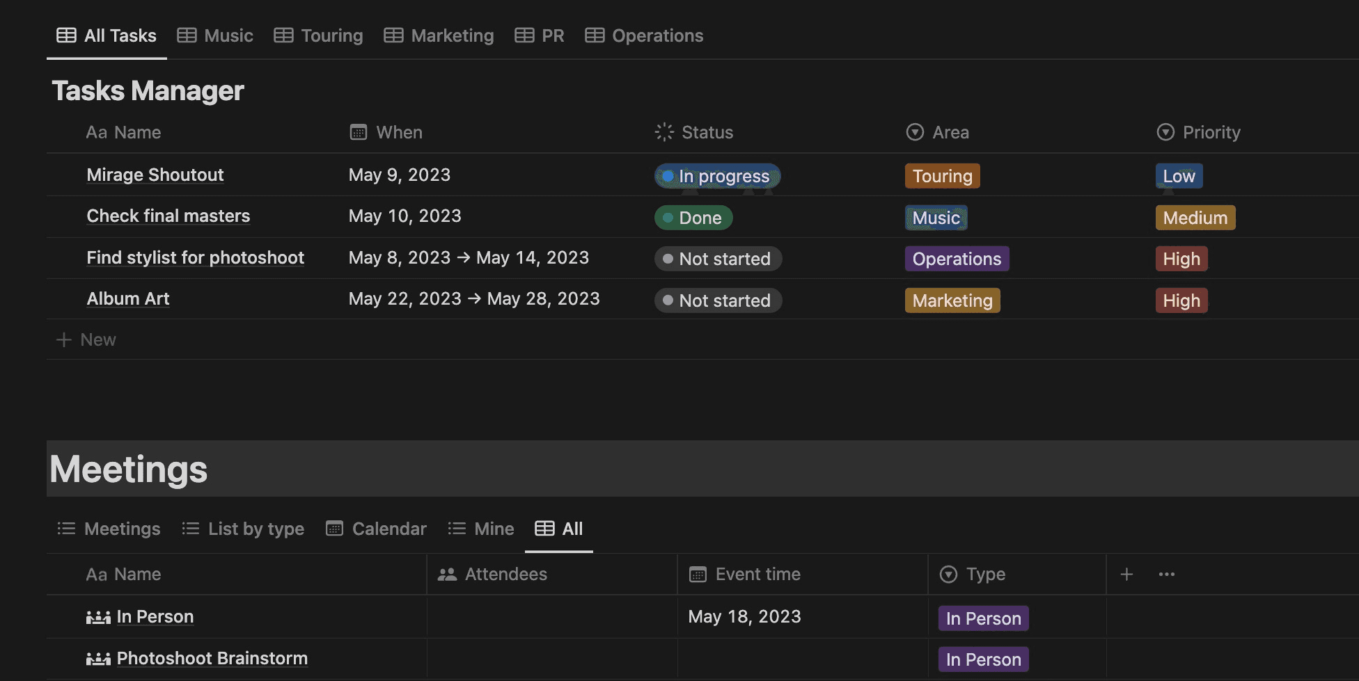Everything you need in one workspace — releases, touring, marketing, and operations all connected and always under control.