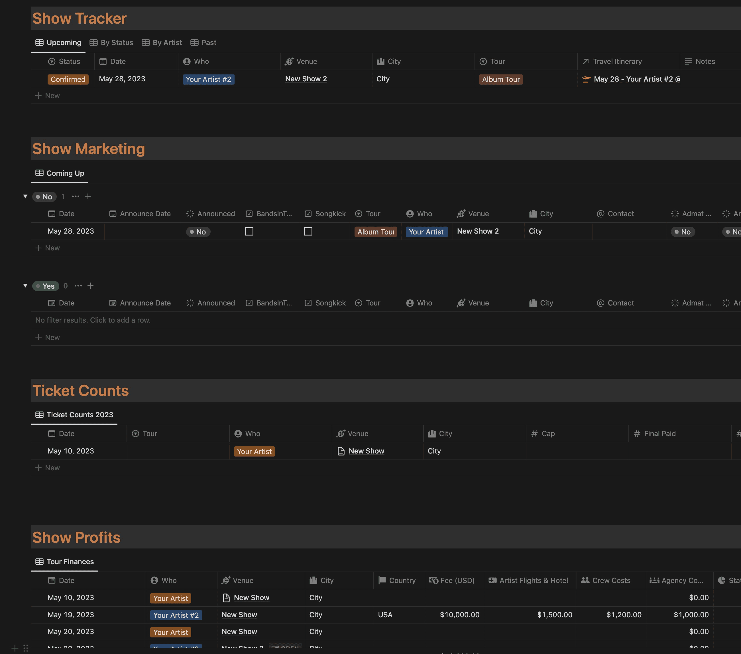 Show Marketing Tracker