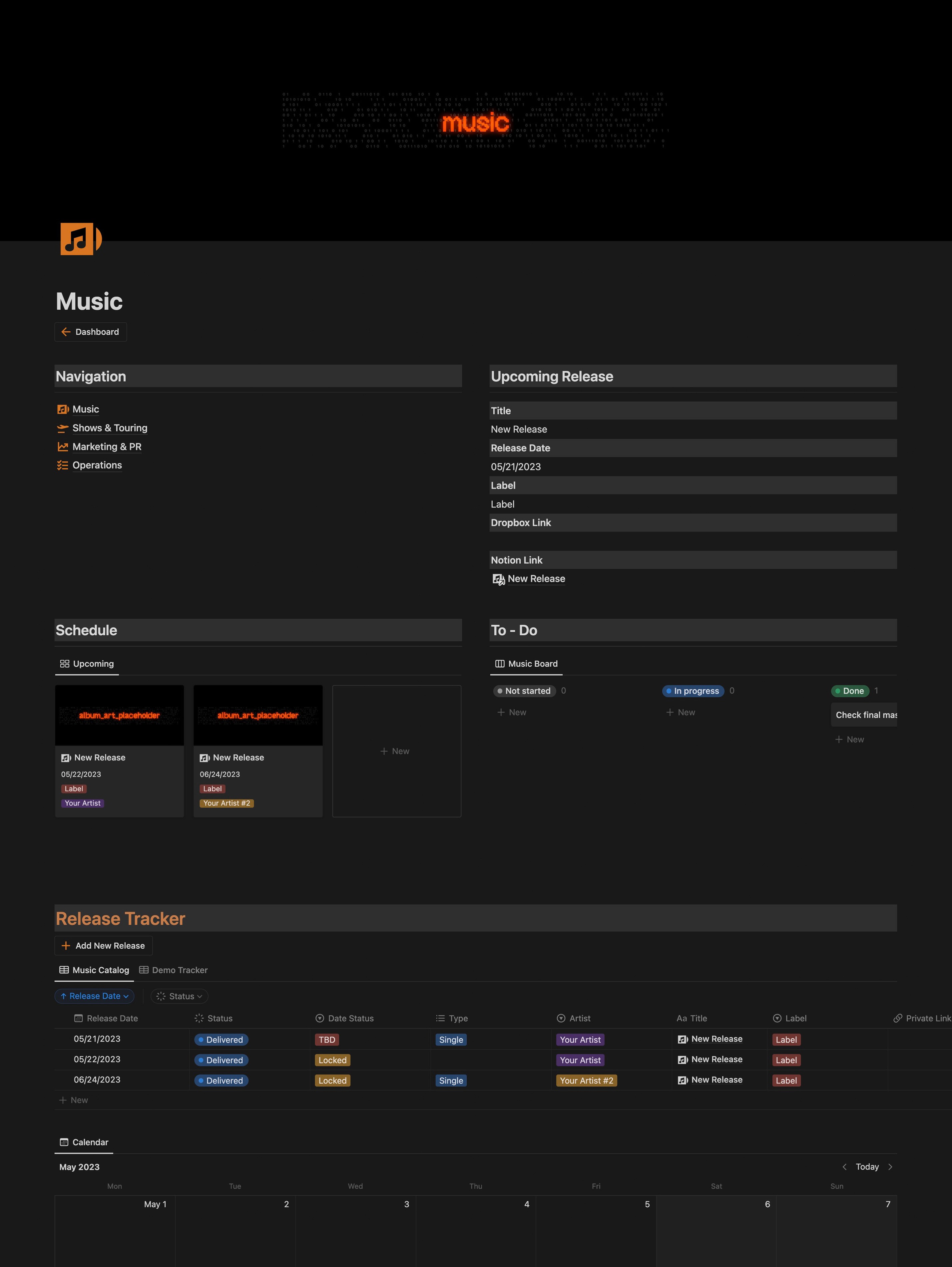 in one Notion workspace designed for modern music careers.